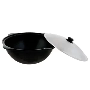 Узбекский казан выполнен гладким литьем с толстыми стенками, плоским дном и имеет по бокам четыре ручки. В комплект входит крышка, которая во время приготовления способствует сохранению необходимой температуры внутри казана, благодаря чему сохраняются все полезные свойства продуктов. Узбекский казан можно использовать как на открытом огне, так и на плите, в духовке, в печи.
