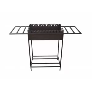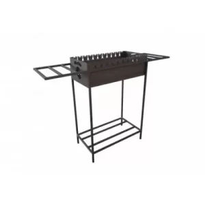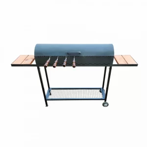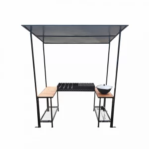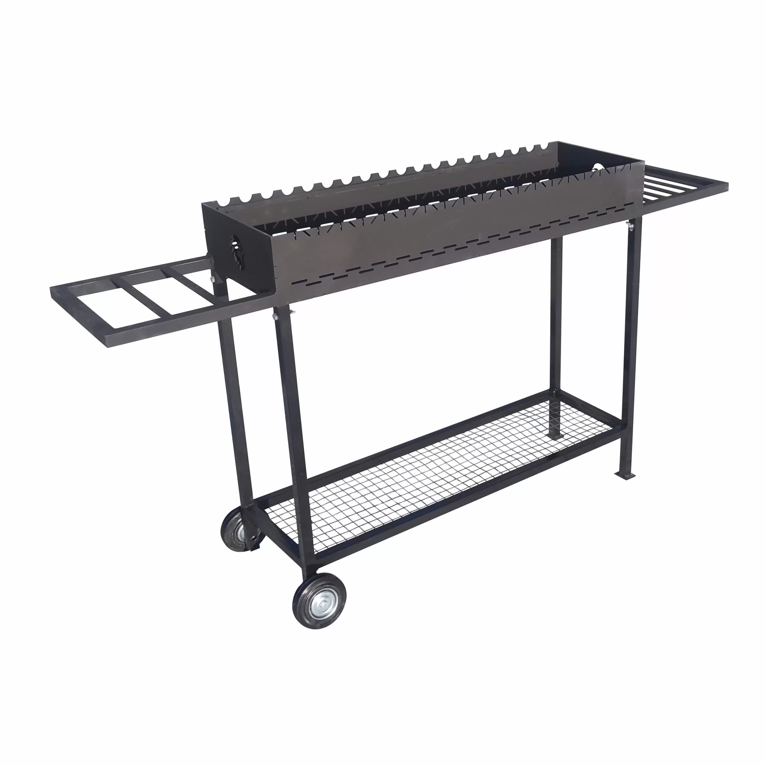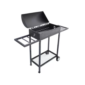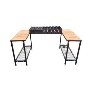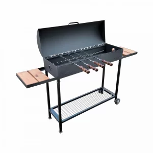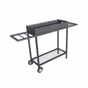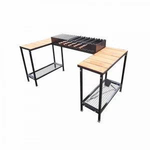 - Толщина стали: 5мм, высота: 980 мм, ширина: 320мм, длина: 1650мм, глубина: 145мм. Две столешницы по краям, специальная полка для дров или посуды, пара колесиков, съемная крышка барбекю.